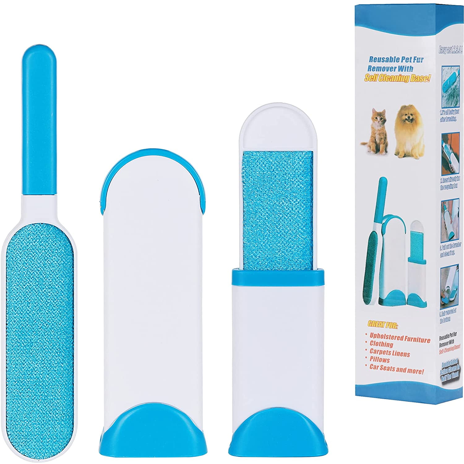 Pet Hair Remover 1 Double Sided Standard Size 1 Travel Pet Hair Removal Brush Self Cleaning Base Remove Cat And Dog Fur Lint Fluff From Carpet Car Seat Couch Walmart Com